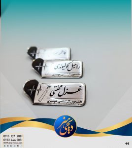 یکی از محصولاتی که هر کدام از اعضا کادر درمان شامل پرستار های شاغل در مراکز درمانی دارند اتیکت می باشد.این محصول با طرح زیبا جلوه ای خاص به فرم سازمانی مکان شما میدهد اتیکت مشخصات به همراه پست مدیریتی شخص می باشد.اتیکت فلزی بهترین پیشنهاد می باشد