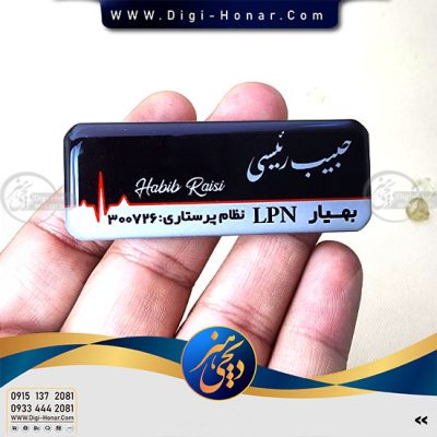 يکي از محصولاتي که هر کدام از اعضا کادر درمان شامل پرستار هاي شاغل در مراکز درماني دارند اتيکت مي باشد.اين محصول با طرح زيبا جلوه اي خاص به فرم سازماني مکان شما ميدهد اتيکت مشخصات به همراه پست مديريتي شخص مي باشد.اتيکت فلزي بهترين پيشنهاد مي باشد