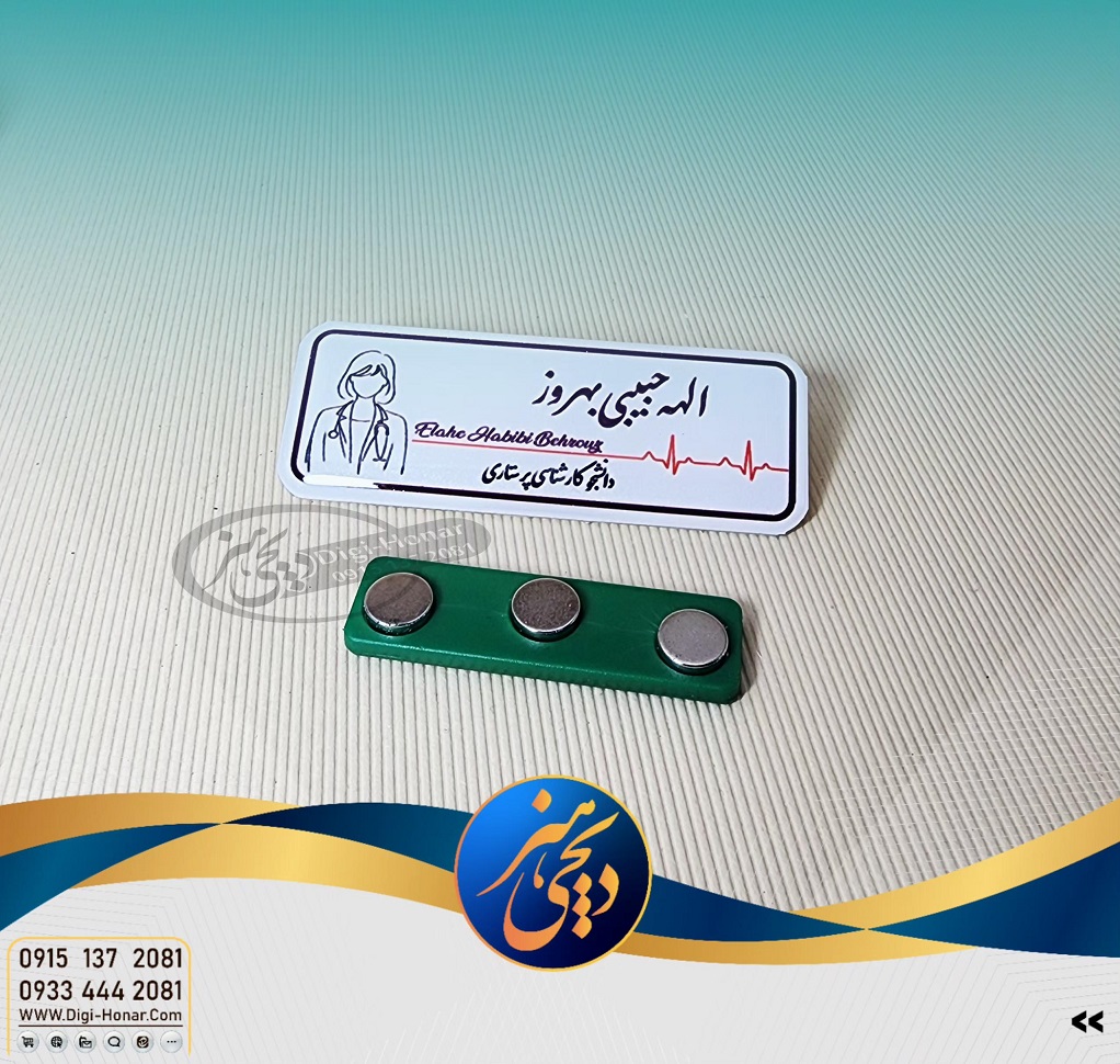 هنرسرای معلم بهعنوان تولیدکننده تخصصی محصولات شناسایی و فرهنگی، این اتیکت را با دقت بالا، کیفیت ممتاز و متناسب با نیاز واقعی کادر درمان طراحی و تولید کرده است.
